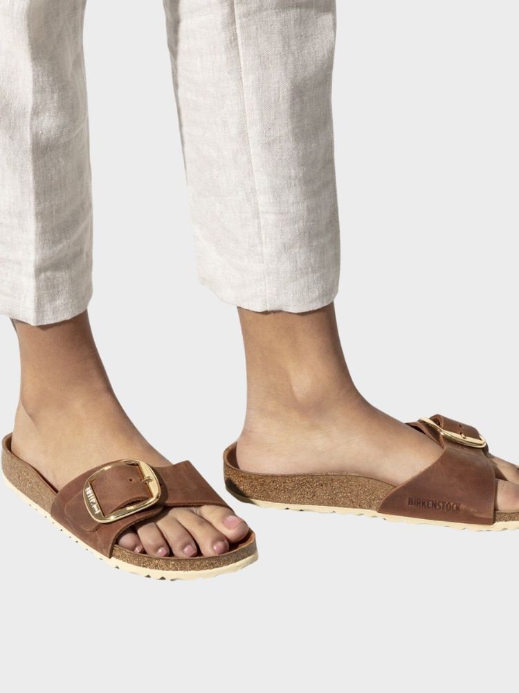 Birkenstock Madrid Big Buckle er en moderne fortolkning af den klassiske Madrid-sandal med et stilrent look og ekstra detalje i form af en stor spænde. Den kombinerer Birkenstocks kendte komfort med et mere fashion-orienteret udtryk, perfekt til rejser, sommerbrug og hverdagsoutfits, hvor både komfort og stil skal være i fokus.