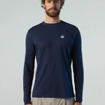 Men's Long-sleeved T-shirt with logo patch - Herre - Navy