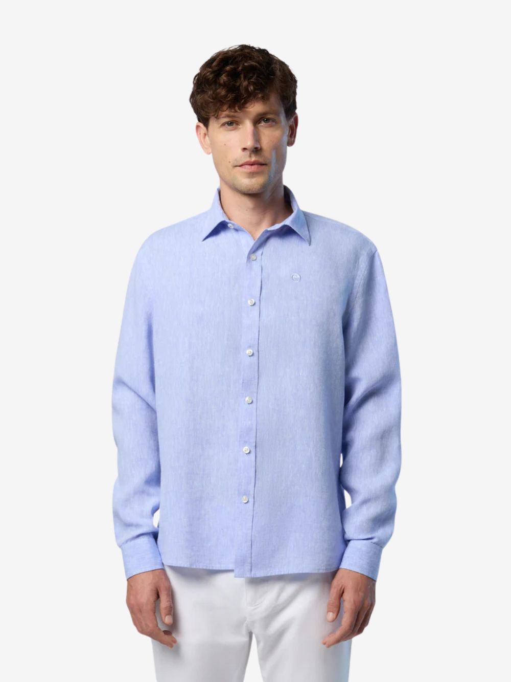 Linen shirt with embroidered logo - Mænd - Light Blue