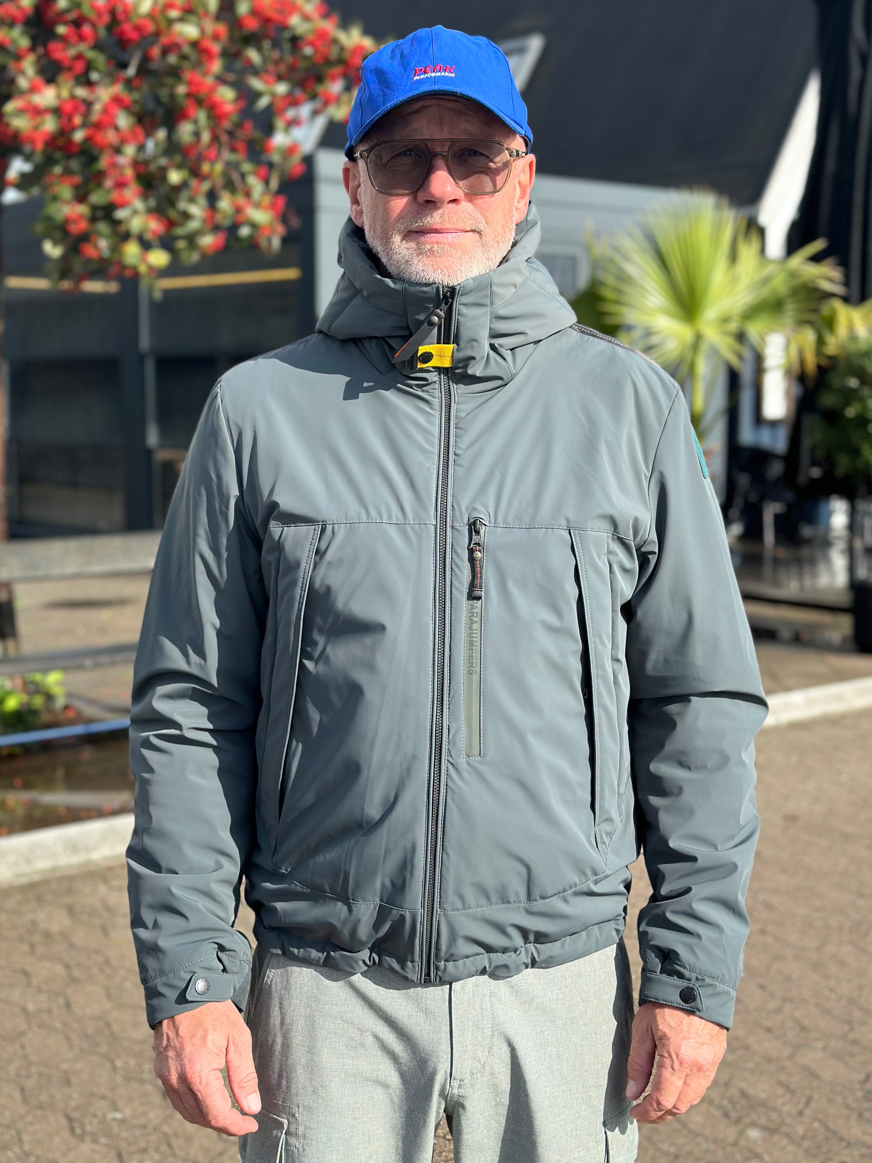 - Parajumpers silikonepatch på ærmet og ikonisk gul tape ved halslukningen