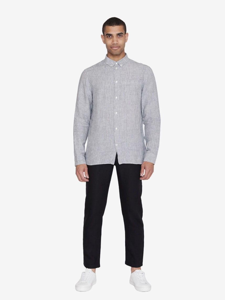 Men's REGULAR STRIPED LINEN SHIRT - Total Eclipse