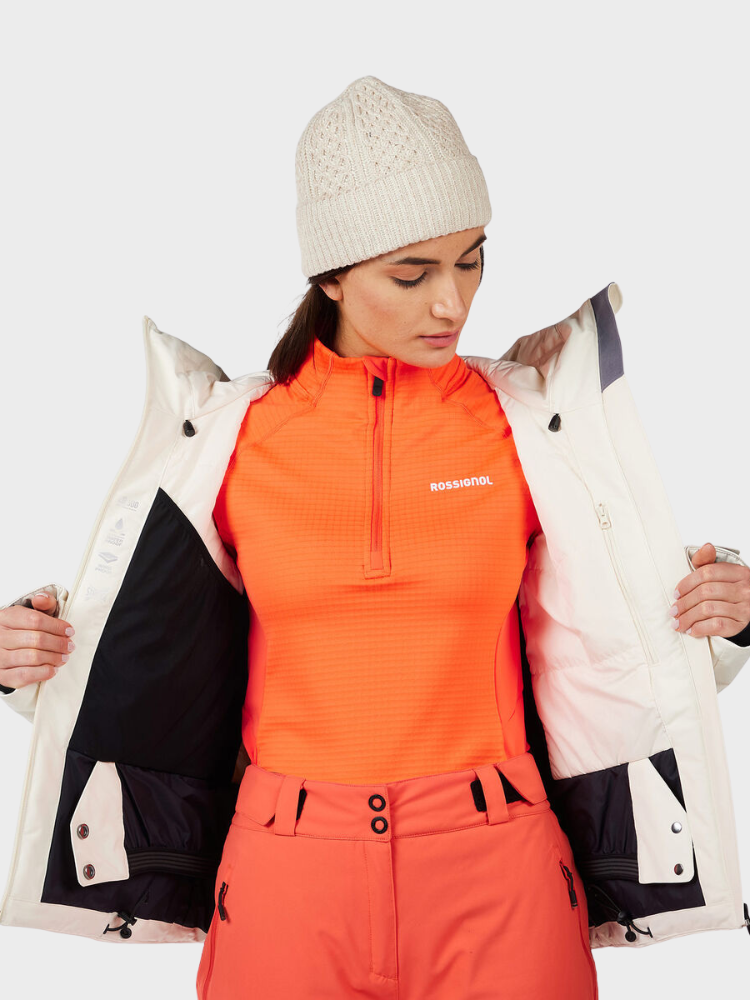 Rossignol Women's Rochrun Insulated Back-Logo skijakke er en teknisk skijakke designet til kvinder, der søger både stil og funktionalitet på pisterne. Denne jakke kombinerer moderne design med avancerede materialer og funktioner, der sikrer komfort og beskyttelse under skiløb