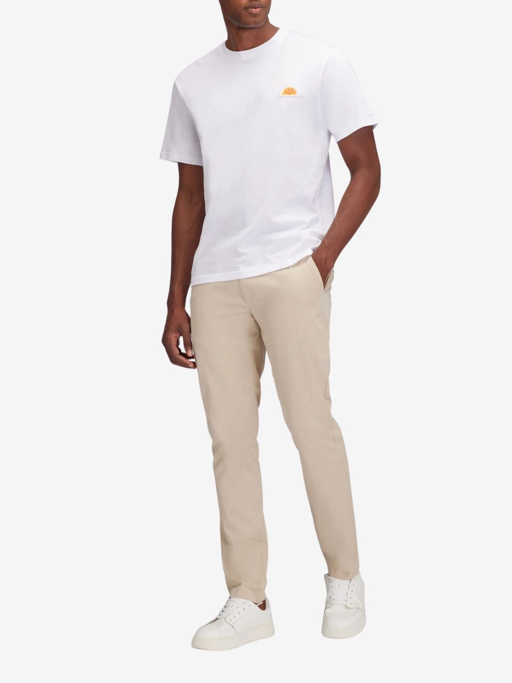 Enkel og stilren T-shirt med korte ærmer, fremstillet i blød 100% bomuldsjersey. T-shirten har et klassisk snit og er pyntet med et diskret logo-patch fra arkivet på brystet. Perfekt til et afslappet hverdagslook.