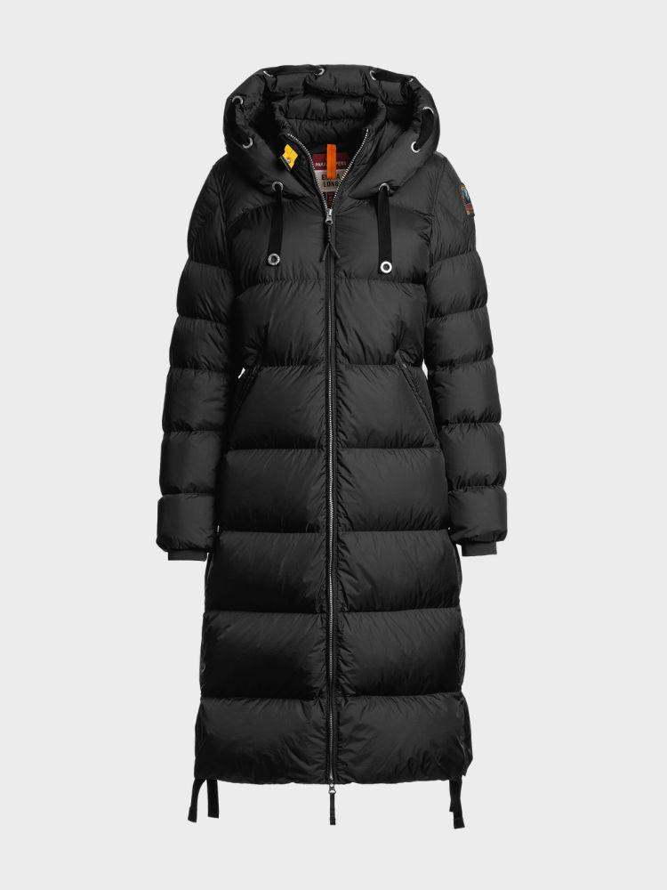 Panda er en ekstra lang dunjakke fra Extra Long-kollektionen, designet til at kombinere moderigtigt snit med teknisk funktion. Jakken er fremstillet i let nylon-microripstop udvendigt, der er lamineret med en farvet membran for at styrke farvedybden og modstå vejr. Fyldet består af 100 % andedun, som giver høj isoleringsevne og let varme. Med sin regulære pasform og klassiske Parajumpers-signaturer er Panda en stilfuld og praktisk løsning til kølige klimaer.
