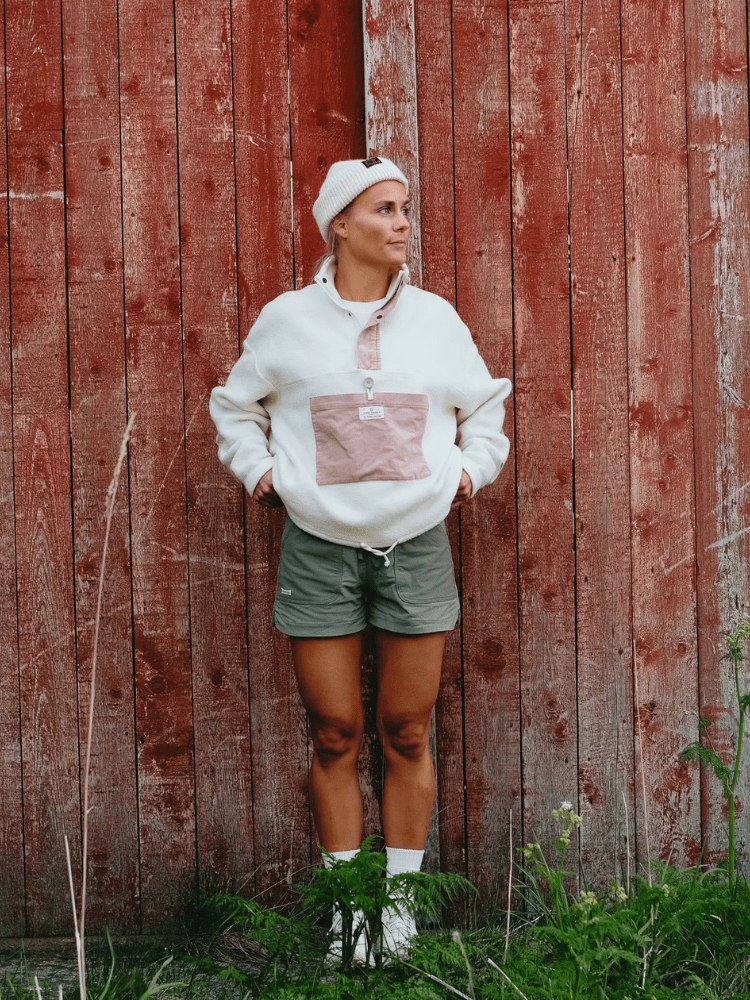 Den kombinerer blød fleece med eksklusive materialer som italiensk uld og fransk corduroy, hvilket giver både varme og et karakteristisk, tidløst udtryk.