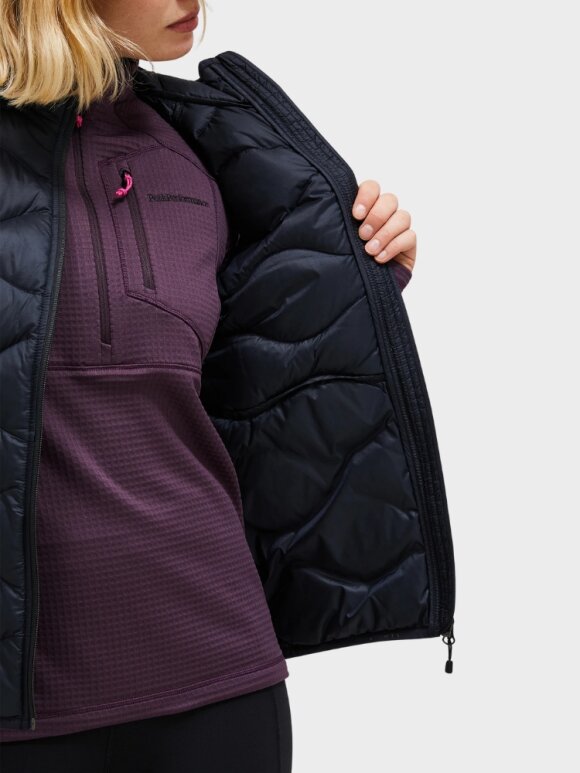 Peak Performance Helium Down Vest er en ultralet og pakbar dunvest designet til at give fremragende varme uden at tilføje vægt. Med sin ikoniske quiltede struktur og moderne pasform er den ideel som isolerende lag under en skaljakke eller som selvstændig yderbeklædning i køligere vejr.